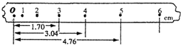 (2)正确使用打点计时器,打出的某一条纸带如图所示,O是纸带静止时打的点,1、2、3、4、5、6是依次打的6个点,已知电源频率是50Hz,利用图中给出的数据可求出打第