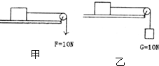 2、选择题   如图,将完全相同的两个物体甲、乙放在光滑的水平桌面上,通过一水平绳对其施力,甲是在绳的另一端施以10N的竖直向下的拉力,乙是在绳的另一端挂一个重10N的物体.则两物体的加速度相比