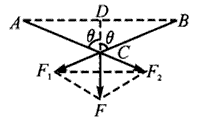 参考答案:解:对结点O的拉力F产生拉伸OA和OB的两个效果,因此可分解为沿绳方向的力F1和F2,因为OA=OB,所以F1、F2大小相等,平行四边形为菱形,如图,作另一对角线F1F2交于C点,在直角三角形OF1C中,