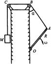 2、计算题 (6分)如图所示,杆OA长为R,可绕过O点的水平轴在竖直平面内转动,其端点A系?着一跨过定滑轮B、C的不可伸长的轻绳,绳的另一端系一物块M,滑轮的半径可忽略,B在O的正上方,OB之间的距离为H。某一时刻,当绳的BA段与OB之间的夹角为α=30°时,杆的角速度为ω,求此时物块M的速率 vM。
