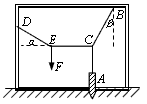 5、计算题 如图所示是拔桩装置。当用大小为F,方向竖直向下的作用力拉图中绳上的E点时,绳CE部分被水平拉直,绳CA被拉到竖直,绳DE与水平方向的夹角为α,绳BC与竖直方向的夹角为β。则绳CA拔桩的作用力的大小是多少?