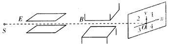 2、选择题 如图所示,一束正离子从S点沿水平方向射出,在没有电、磁场时恰好击中荧光屏上的坐标圆点O,若同时加上电场和磁场后,正离子束最后打在荧光屏上坐标系的第3象限中,则所加电场E和磁场B的方向可能是(不计离子重力及其间相互作用力)