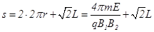 粒子在磁场中共碰板2次,做圆周运动的时间为 t1=2T;粒子进入磁场中,在水平方向的总位移s=