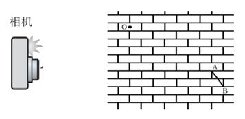 他从坚直墙面上O点的左上方与O竖直高度相距H=5.5m处,水平弹出一个小石子落下,在小石子沿抛物线下落通过O点以后,按动快门,对小石子照相,得到如图所示的照片,由于石子的运动,它在照片上留下一条模糊的径迹AB。已知每块砖的平均长度约为24cm,平均厚度约6cm。(g取9.8m/s2)