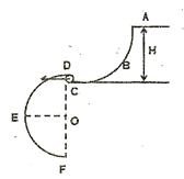 3、计算题 如图所示,ABC和DEF是固定在同一竖直平面内的两条光滑轨道,其中ABC的末端水平,DEF是半径为r=0.4m的半圆形轨道,其直径DF沿竖直方向,C、D可看作重合。现有一可视为质点的小球从轨道ABC上距C点高为H的地方由静止释放。(取g=10m/s2)