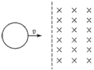 2、填空题 如图所示,在光滑的绝缘水平面上,一个半径为10 cm、电阻为1.0 Ω、质量为0.1 kg的金属环以10 m/s的速度冲入一有界磁场,磁感应强度为B=0.5 T。经过一段时间后,圆环恰好有一半进入磁场,该过程产生了3.2 J的电热,则此时圆环的瞬时速度为_____________m/s;瞬时加速度为_____________m/s2。