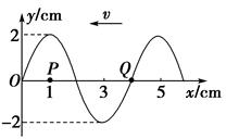 本题解析:当Q点在t=0时的振动状态传到P点时,Q点在t=0时的波沿也向左传到P点,所以x=0cm处质元在波谷,x=2cm处质元在波峰,则 向y轴的正方向运动,