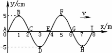 5、选择题  如图所示是一列简谐波在t=0时的波形图象,波速为v=10m/s,此时波恰好传到I点,下列说法中正确的是(  )