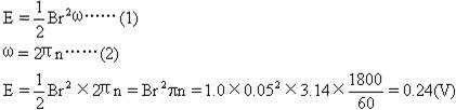 4、简答题 图是最早的简易发电机──法拉第圆盘发电机.A为铜盘,OO"为转轴,磁感线穿过圆盘,圆盘在动力机带动下匀速转动时,轴与盘的边缘间产生电势差.若已知铜盘直径D=10cm,匀强磁场磁感强度B=1.0T,盘转速n="1800" r/min,计算盘转动时,发电机的感应电动势E的值.