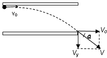 参考答案:解:(1)设粒子飞出极板边缘时的速度为v,并分解为V0和Vy,如图