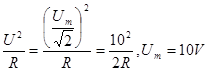 3、填空题 一个电热器接在10V的直流电源上,产生一定大小的热功率。把它改接在交流电源上,要使产生的热功率是原来的一半,则交流电源电压的最大值等于?