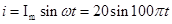 本题解析:观察电流随时间变化的图像,电流变化为正弦交流电,最大值为20A,C错误。正弦交流电有效值为最大值除以