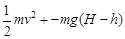 1、选择题 如图所示,质量为m的物体,以速度v离开高为H的桌子,当它落到距地面高为h的A点时,在不计空气阻力的情况下,下列判断正确的是?(?)