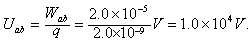 根据动能定理Wab+W=△Ek,Wab=△Ek-W=8.0×10-5 J-6.0×10-5 J=2.0×10-5 J