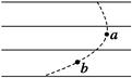 4、选择题  如图所示,平行的实线表示电场线,虚线表示一个离子穿越电场的运动轨迹,下列判断正确的是(   )