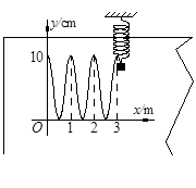 1、计算题 竖直悬挂的弹簧振子下端装有记录笔,在竖直面内放置记录纸.当振子上下振动时,以水平向左速度v=10m/s匀速拉动记录纸,记录笔在纸上留下记录的痕迹,建立坐标系,测得的数据如图所示,求振子振动的振幅和频率.