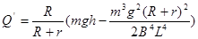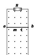 2、计算题  如图所示,竖直放置的U形导轨宽为L,上端串有电阻R,磁感应强度为B的匀强磁场方向垂直于纸面向外.金属棒ab的质量为m,电阻为r,与导轨接触良好,不计摩擦.从静止释放后ab保持水平而下滑,当下滑的高度为h时,达到最大速度.试求: