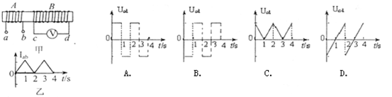 2、填空题 在一起的线圈 A 与 B 如图甲,当给线圈 A 通以图乙电流(规定由进入 b 流出为电流正方向)时,则线圈B两端电压变化图为 ?