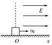 4、计算题 在一个水平面上建立x轴,在过原点O垂直于x轴的平面的右侧空间有一个匀强电场,场强大小E=6.0×105 N/C,方向与x轴正方向相同。在O处放一个电荷量q=-5.0×10-8 C,质量m=1.0×10-2 kg的绝缘物块。物块与水平面间的动摩擦因数μ=0.20,沿x轴正方向给物块一个初速度v0=2.0 m/s,如图所示。(g取10 m/s2)试求: