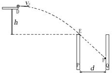 的速度匀速直线运动,某时从桌边缘D水平飞出,之后小球恰好从竖直放置的有等量异种电荷的平行金属板P、Q上端E处进入两板间,又沿直线运动碰到Q板上的F点,不计各种阻力,已知DE之间的竖直高度