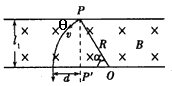 粒子在磁场中做匀速圆周运动(如图), 设P’为虚线与分界线的交点,∠POP’=α 。由于粒子在分界线处的速度与分界线垂直,圆心O应在分界线上,OP长度即为粒子运动的圆弧的半径R。由几何关系得?