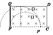 离子能打在QF上,则既没有从DQ边出去也没有从PF边出去,则离子运动径迹的边界如图中Ⅰ和Ⅱ?(2分)