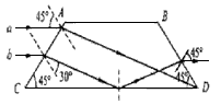 (2)图2表示两面平行玻璃砖的截面图,一束平行于CD边的单色光入射到AC界面上。a、b 是其中的两条平行光线。光线a在玻璃砖中的光路已给出。画出光线b从玻璃砖中首次出射的光路图,并标出出射光线与界面法线夹角的度数。