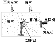 3、简答题  英国物理学家卢瑟福1919年通过如图所示的实验装置,第一次完成了原子核的人工转变,并由此发现了______.实验时,卢瑟福仔细调节铝箔的厚度,使______恰好不能穿透铝箔.该实验的核反应方程为: