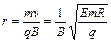 所以粒子的轨道半径为?r=mv/qB=