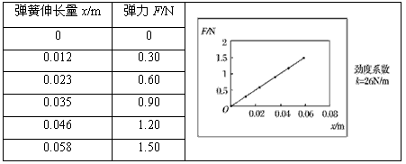 5、实验题 某同学在竖直悬挂的弹簧下加挂钩码,探究弹力与弹簧伸长量的关系。下表是该同学的实验数据。实验时弹簧始终未超过弹性限度。