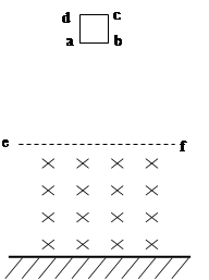1、计算题 (20分)如图所示,水平地面上方高为h=7.25m的区域内存在匀强磁场,ef为磁场的上水平边界。边长L=l.0m,质量m=0.5kg,电阻R=2.0Ω的正方形线框abcd从磁场上方某处自由释放,线框穿过磁场掉在地面上。线框在整个运动过程中始终处于竖直平面内,且ab边保持水平。以线框释放的时刻为计时起点,磁感应强度B随时间t的变化情况如B-t图象,已知线框ab边进入磁场刚好能匀速运动,g取10m/s2。求: