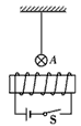 3、选择题 如图所示,均匀绕制的螺线管水平放置,在其正中心的上方附近用绝缘线水平吊起通电直导线A。A与螺线管垂直,“×”表示导线中电流的方向垂直于纸面向里。电键S闭合后,A受到通电螺线管磁场的作用力的方向是