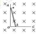 5、选择题 AOC是光滑的直角金属导轨,AO沿竖直方向,OC沿水平方向,ab是一根金属直棒靠立在导轨上(开始时b离O点很近),如图所示.它从静止开始在重力作用下运动,运动过程中a端始终在AO上,b端始终在OC上,直到ab完全落在OC上,整个装置放在一匀强磁场中,磁场方向垂直纸面向里,则ab棒在运动过程中