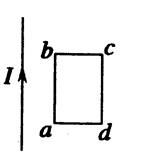 1、选择题 如图所示,在光滑水平面上有一根直导线,直导线旁放有一闭合导线框abcd,线框的ab边与直导线平行,直导线中通有如图所示方向的电流。下列说法中正确的是 ( )
