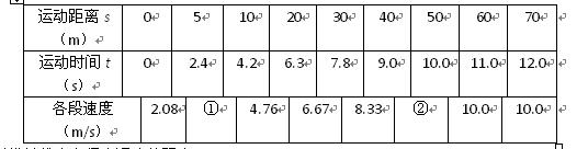 (2)根据⑴作出的s-t图知,自行车在每一路段内的速度变化不是很大,因此可以用某一段的平均速度代替该段的速度。请计算出上述表格中空缺的①、②处的数据:①?m/s;②?m/s(保留三位有效数字)。