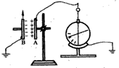 5、选择题 如图所示,把一个平行板电容器与一个静电计相连接后,给电容器带上一定电量,静电计指针的偏转指示出电容器两板间的电势差,现保持极板A不动,而要使静电计指针的偏角增大,可采取的办法是