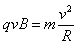 C、洛伦兹力提供向心力,即Bqv=mv2r,解得:r=mvqB;
