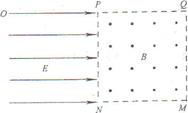 ⑶若图中电场方向改为竖直向下,场强大小未知,匀强磁场的磁感应强度变为原来的4倍,当粒子从O点以水平速度v0射入电场,从PN的中点进入磁场,从N点射出磁场,求带电粒子的初速度v0。