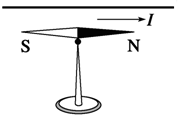 1、选择题 如图所示,小磁针正上方的直导线与小磁针平行,当导线中有电流时,小磁针会发生偏转.首先观察到这个实验现象的物理学家和观察到的现象是( )