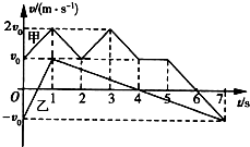 B、根据速度图象与坐标轴所围的“面积”表示物体的位移,t轴上方的“面积”表示位移是正值,t轴下方的“面积”表示位移是负值,则知在t=0到t=7s之间乙的位移为零.故B正确;
