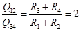 (2)开关再接通2,电容器放电,外电路分别为R1、R2和R3、R4两个支路,通过两支路的电量分别为Q12=