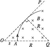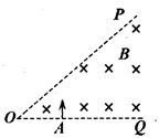 4、填空题 如图所示,在POQ区域内分布有磁感应强度为B的匀强磁场,磁场方向垂直于纸面向里,有一束负离子流沿纸面垂直于磁场边界OQ方向从A点射入磁场,已知OA=s,∠POQ=450,负离子的质量为m,带电荷量的绝对值为q,要使负离子不从OP边射出,负离子进入磁场时的速度最大不能超过?。