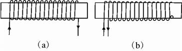 4、选择题 取两个完全相同的长导线.用其中一根绕成如图(a)所示的螺线管,当在该螺线管中通以电流强度为I的电流长,测得螺线管内中部的磁感应强度大小为B。若将另一根长导线对折后绕成如图(b)所示的螺线管,并通以电流强度也为I的电流时,则在螺线管内中部的磁感应强度大小为( )