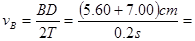 4、填空题 如图所示,是某同学在用打点计时器(电源频率为50Hz),“探究小车速度随时间变化的规律”实验中,得到一条纸带如图所示。纸带上的A、B、C、D、E、F是计数点(每打五次点取一个计数点)。已知AB=4.20cm,BC="5.60" cm,CD="7.00" cm,DE="8.40" cm,EF="9.80" cm。则在打点计时器打下C点时,小车运动的速度