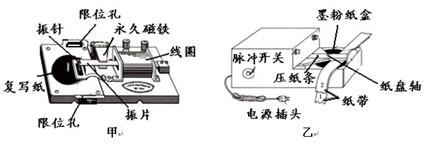 4、填空题 打点计时器是高中物理中重要的物理实验仪器,下图中甲、乙两种打点计时器是高中物理实验中常用的,请回答下面的问题