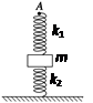 4、填空题 如图所示,劲度系数为k2的轻弹簧竖直放在桌面上(与桌面不粘连),上端固连一质量为m的物块。另一劲度系数为k1的轻弹簧下端固连在物块上。现将k1的上端A缓慢上提,当k2的弹力大小等于时,m的重力势能增加了?,A点上升了?。