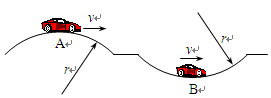 4、填空题 如图所示,求质量为m的汽车以速率v行驶通过A、B两处弧形(圆弧半径为r)。则汽车在B处时所受地面的支持力为 ;为使汽车安全行驶,汽车经过A处时的速率不能超过 。