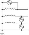2、选择题 三相电源的连接如图4-1-10所示,电路中的三个交流电压表的示数U1、U2、U3间的关系是(?)