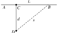 2、计算题  早期人类狩猎的主要工具为标枪.如图,一只野兔(高度不计)以速度v1=20? m/s的速度沿AB向右匀速奔跑,猎手隐藏在与直线AB相距d="9.0" m处的D点准备投掷.当野兔到达C点时,猎手沿水平方向投出一支标枪,标枪的投出点距离地面高度为h="1.8" m,忽略空气阻力,重力加速度g=10? m/s2.若刚好射中野兔,求: