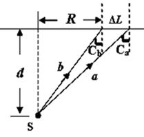 1、计算题 (10分)如图甲所示,在平静的水面下深d处有一个点光源s,它发出的是两种不同颜色的a光和b光,在水面上形成了一个被照亮的圆形区域,该区域的中间为由ab两种单色光所构成的复色光的圆形区域,其半径为R。周边为环状区域,其宽度为ΔL且为a光的颜色(见图乙)。则:两种色光的折射率na、nb分别是多少?